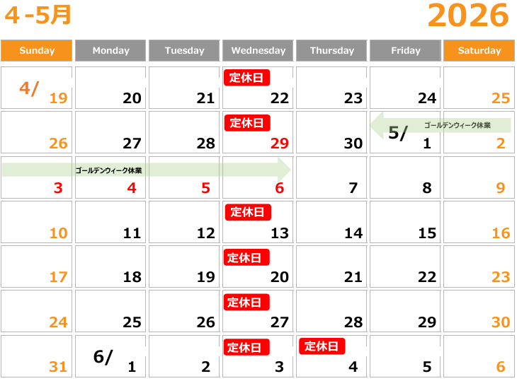 ゴールデンウイーク休業と5月営業日のお知らせ